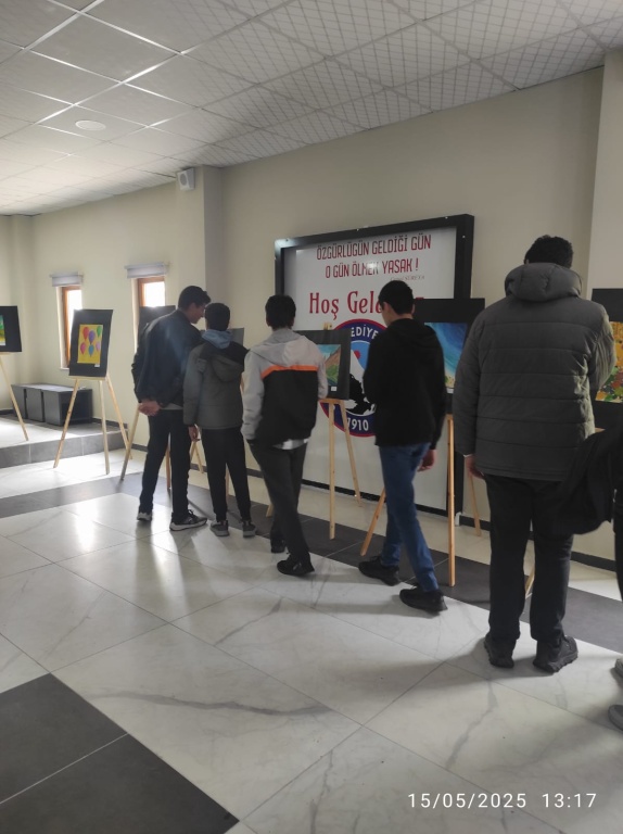 Resim öğretmenimiz Nurten Karadağ’ın öncülüğünde, resim kursu öğrencilerimizin çalışmalarından oluşan sergimiz